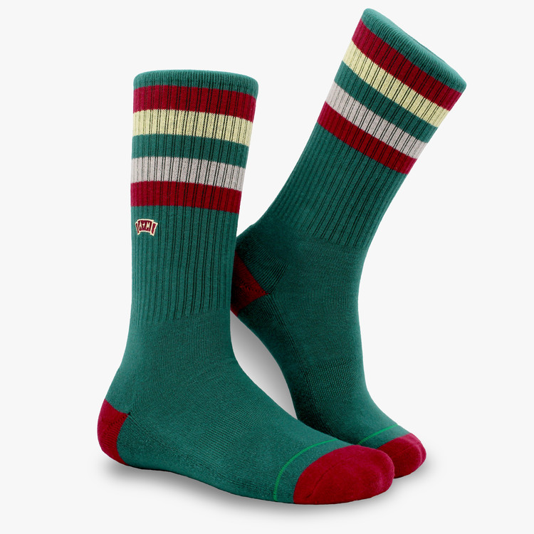 · Retro Stripes Crew Socks 시리즈는 156침수로 제작하여 사계절에 적합한 두께감을 가지고 있습니다. 바닥면에 테리쿠션 (Terry Cushioning)을 적용하여 편안한 쿠션감을 제공합니다.
