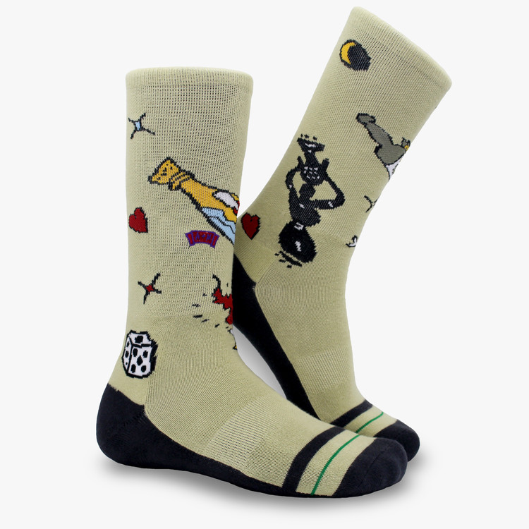 · Old School Tattoo Crew Socks는 156침수로 제작하여 사계절에 적합한 두께감을 가지고 있습니다. 바닥면에 테리쿠션 (Terry Cushioning)을 적용하여 편안한 쿠션감을 제공합니다.