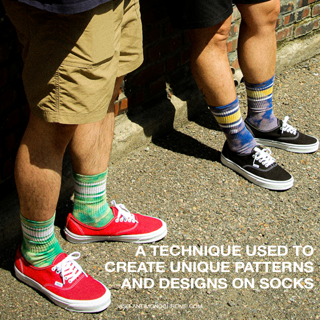 · ANTI MONOCHROME Reverse Tie Dye Crew Socks 시리즈는 종아리 (Leg)와 바닥면 (Sole)에 고무사 패턴을 삽입하여 착용 시 틀어짐을 최소화하였습니다.