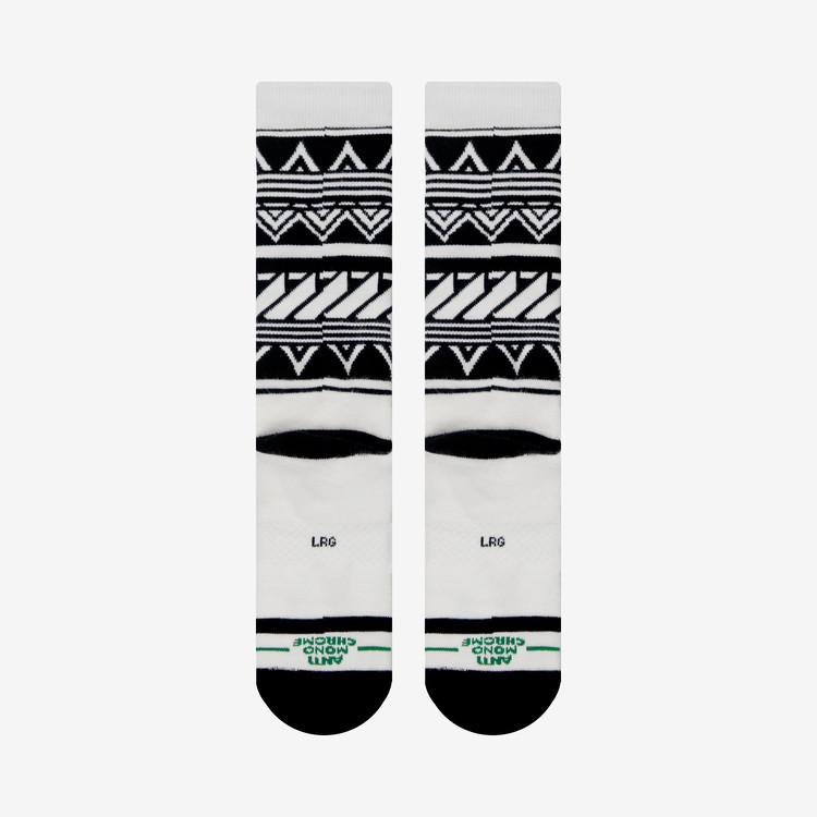 · ANTI MONOCHROME Tribal Tattoo Crew Socks는 종아리 (Leg)와 바닥면 (Sole)에 고무사 메쉬 패턴을 삽입하여 착용 시 틀어짐을 최소화하였습니다.